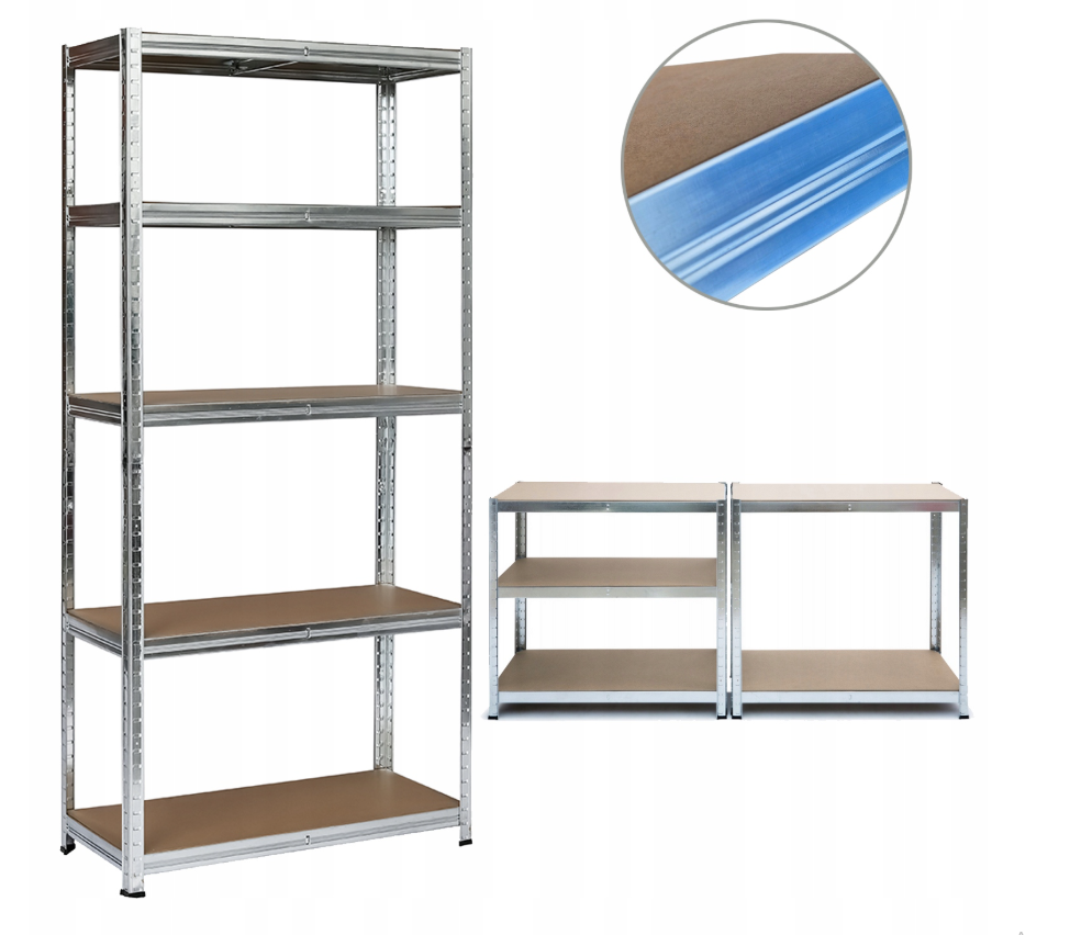 Стелаж складається з 5 полиць із товстої плити МДФ, завдяки чому на кожну полицю можна ставити товари вагою до 175 кілограмів! Посилений сталевий профіль забезпечує чудову стійкість і безпеку предметів, що зберігаються.